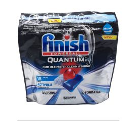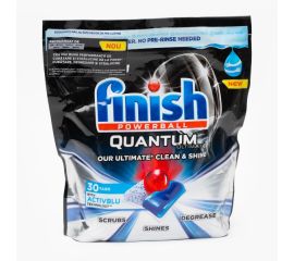 Detergentul de vase tablete Finish Powerball Quantum ultimate este un detergent cu putere mare de curatare, inmoaie petele dificile si curata resturile persistente de produse alimentare. Tabletele Finish Powerball au o compozitie revolutionara, unica, ce ofera o curatare puternica pentru cele mai dificile conditii ale apei. Tabletele sunt formate din 3 agenti activi de curatare: partea alba granulata cu actiune de curatare, partea rosie lichida cu actiune de stralucire si partea albastra lichida cu actiune de degresare