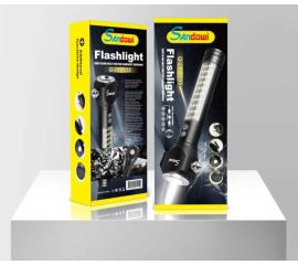 Lanterna Sandowi Q-Led67 este foarte practica datorita celor doua moduri de iluminat diferit, primul find frontal cu o putere mare si un fascicul cu putere de 70 lumeni si cel de al doilea situat pe manerul lanternei format din 5 leduri ce iti ofera o arie mai mare de iluminare.
