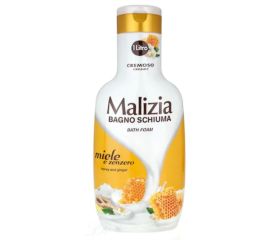 Malizia Bagno Schiuma- Miele e Zenzero - Miere si Ghimbir 1000 Mililitri este un gel spumant de baie, antibacterian cu spuma bogata si delicata, hidratanta si revigoranta. Parfumul cu note de ghimbi te va invalui si te va insoti mult timp. Sticla de plastic cu 1000 mililitri produs