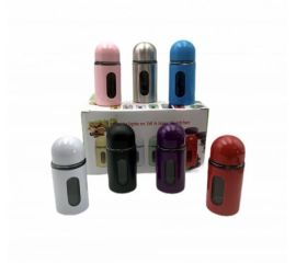 Set de 12 borcane sticla pentru condimente cu 6 culori ideale pentru organizarea condimentelor in bucatarie. Borcanele sunt imbracate intr-un strat exterior de otel inoxidabil, cu vizor pentru a putea vizualiza rapid continutul, Capacul este prevazut cu 3 zone cu orificii de diferite masuri pentru o presarare usoara a tuturor granulatilor de condimente