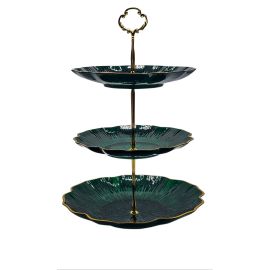 Platou Suport Etajat – 3 Nivele- Plastic & Metal – Aperitive & Prajituri- Margini Aurii