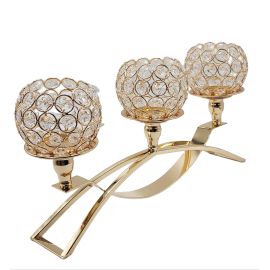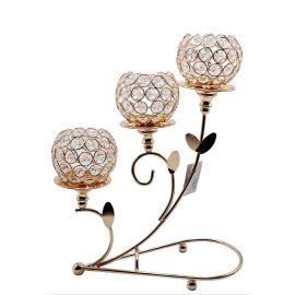 Suport Lumanare – 3 Brate & 3 Suporturi Ovale – Baza Arc - Metal & Plastic – Auriu- ...