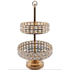 Platou Prajituri – 2 Etaje - Candy Bar – Metal & Cristale Plastic & Oglinda– Aurie –...