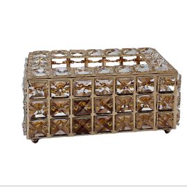 Suport Servetele Dreptunghiular – Fier & Cristale Plastic – Auriu – A 13586
