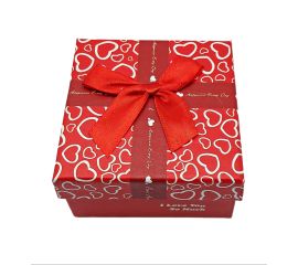 Cutie Cadouri – Patrata – Carton – Rosu & Alb - Model Inimi & Mesaj Love So Much - Funda Rosie - A12138- Nr 1