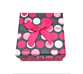 Cutie Cadouri – Patrata – Carton – Roz & Alb & Negru - Model Buline & Inimi & Mesaj Sweet Love - Funda Roz- A12138- Nr 6