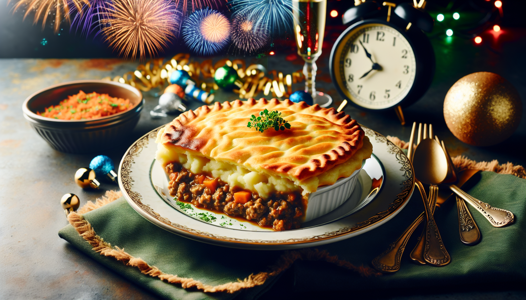 Shepherd’s Pie este un preparat tradițional din bucătăria britanică, care îmbină cele mai savuroase ingrediente într-o plăcintă reconfortantă și hrănitoare. Această rețetă constă, în mod obișnuit, dintr-un strat de carne de miel sau vită gătită cu legume, acoperită cu un strat generos de piure de cartofi. Originile sale pot fi urmărite până în secolul al XIX-lea, fiind adesea preparat ca o modalitate de a folosi resturile de carne. Pe lângă gustul delicios, Shepherd’s Pie este și o alegere ideală pentru mesele festive, precum Revelionul, datorită aspectului său apetisant și a impactului pe care îl are asupra invitaților.
