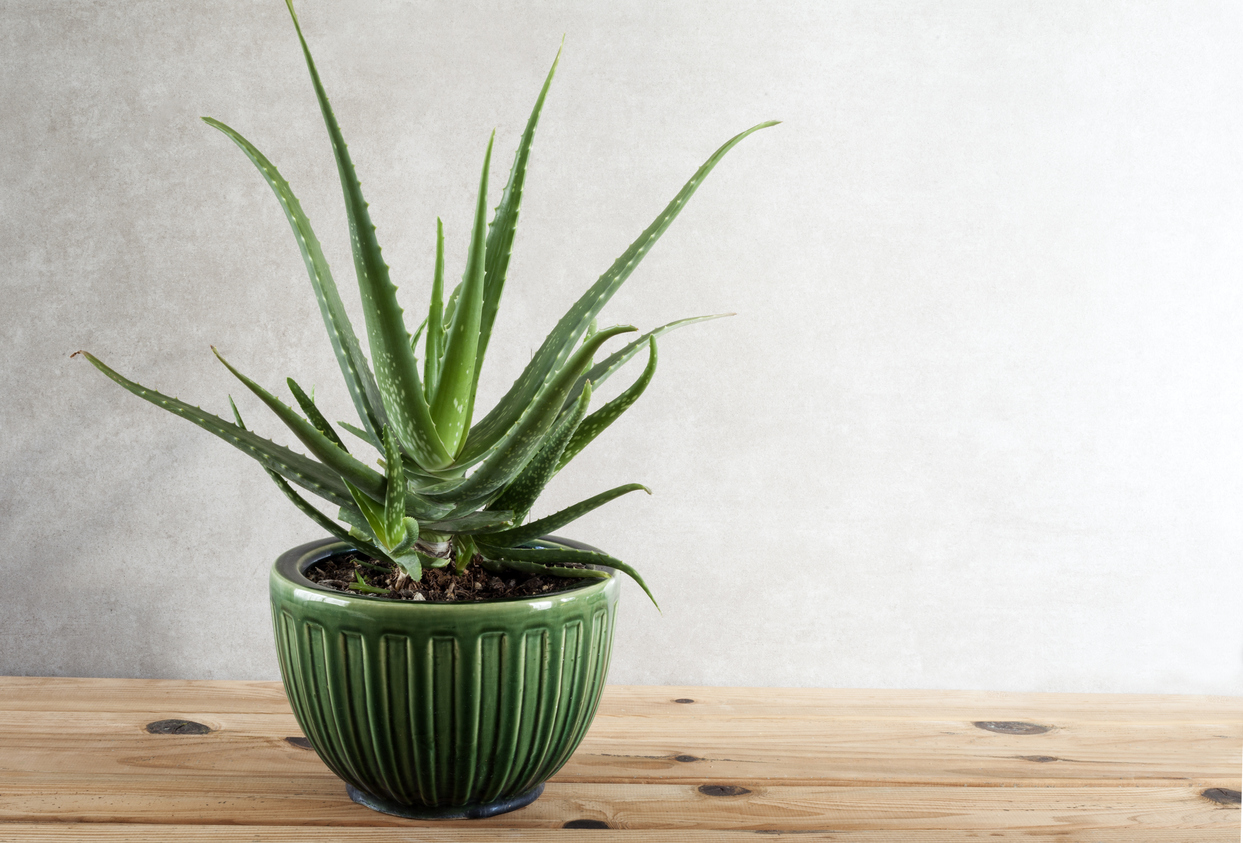 Aloe vera este cunoscută pentru proprietățile sale calmante și hidratante asupra pielii. Gelul de aloe vera este adesea folosit pentru a trata arsuri solare, iritații, eczeme și alte afecțiuni dermatologice. Este, de asemenea, un ingredient frecvent în produsele cosmetice, cum ar fi cremele de față, loțiunile și gelurile de duș.