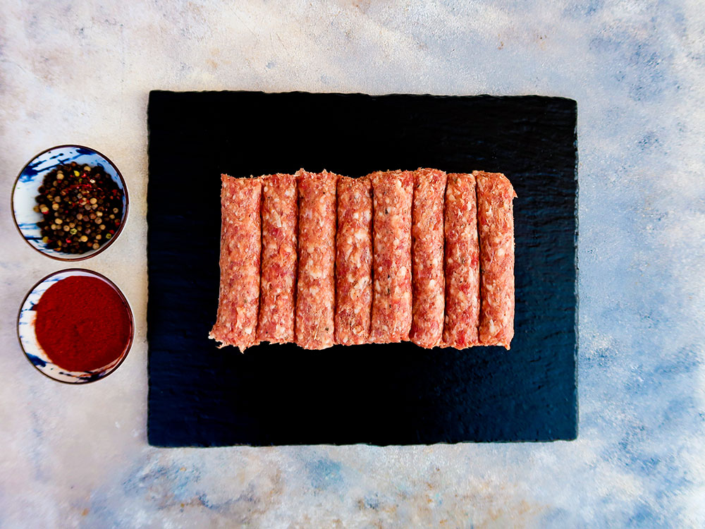 Prepararea cărnii: Tăiați carnea de miel/porc/vita în bucăți mici și apoi măcinați-o fin. Amestecați carnea măcinată cu condimentele pregătite anterior până când toate ingredientele sunt bine încorporate.