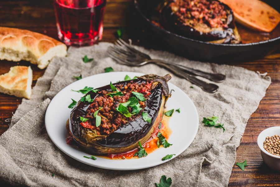 Vânătă umplută: Vinetele pot fi tăiate în două, scoase miezul și umplute cu un amestec de carne, orez, ceapă și condimente. Acestea sunt apoi coapte în cuptor și servite cu sos de roșii sau sos de iaurt.