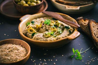 Baba Ganoush: Este un preparat din bucătăria mediteraneană, care implică coacerea vinetelor, scoaterea pulpei și amestecarea acesteia cu tahini (pastă de susan), usturoi, ulei de măsline și condimente. Baba Ganoush este o pastă savuroasă servită cu pâine sau legume.