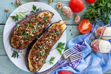 Vinete umplute vegetarian: În loc de carne, vinetele pot fi umplute cu un amestec delicios de legume, orez și condimente. Această opțiune este potrivită pentru cei care urmează o dietă vegetariană sau vegană.