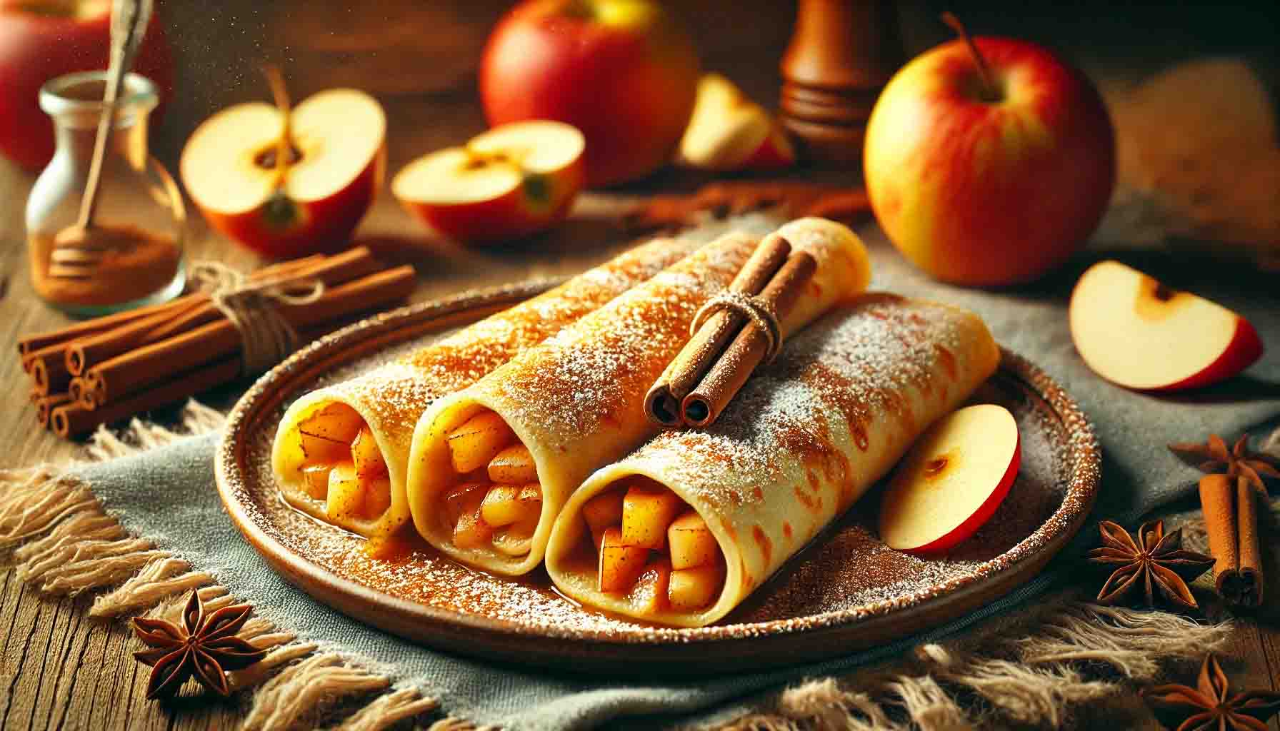 Clătitele cu mere sunt un desert delicios și simplu de preparat, în care clătitele subțiri sunt umplute cu un amestec de mere călite și scorțișoară. Acest desert clasic aduce un echilibru perfect între textura ușoară a clătitelor și dulceața naturală a merelor, făcându-l iubit de toate vârstele.