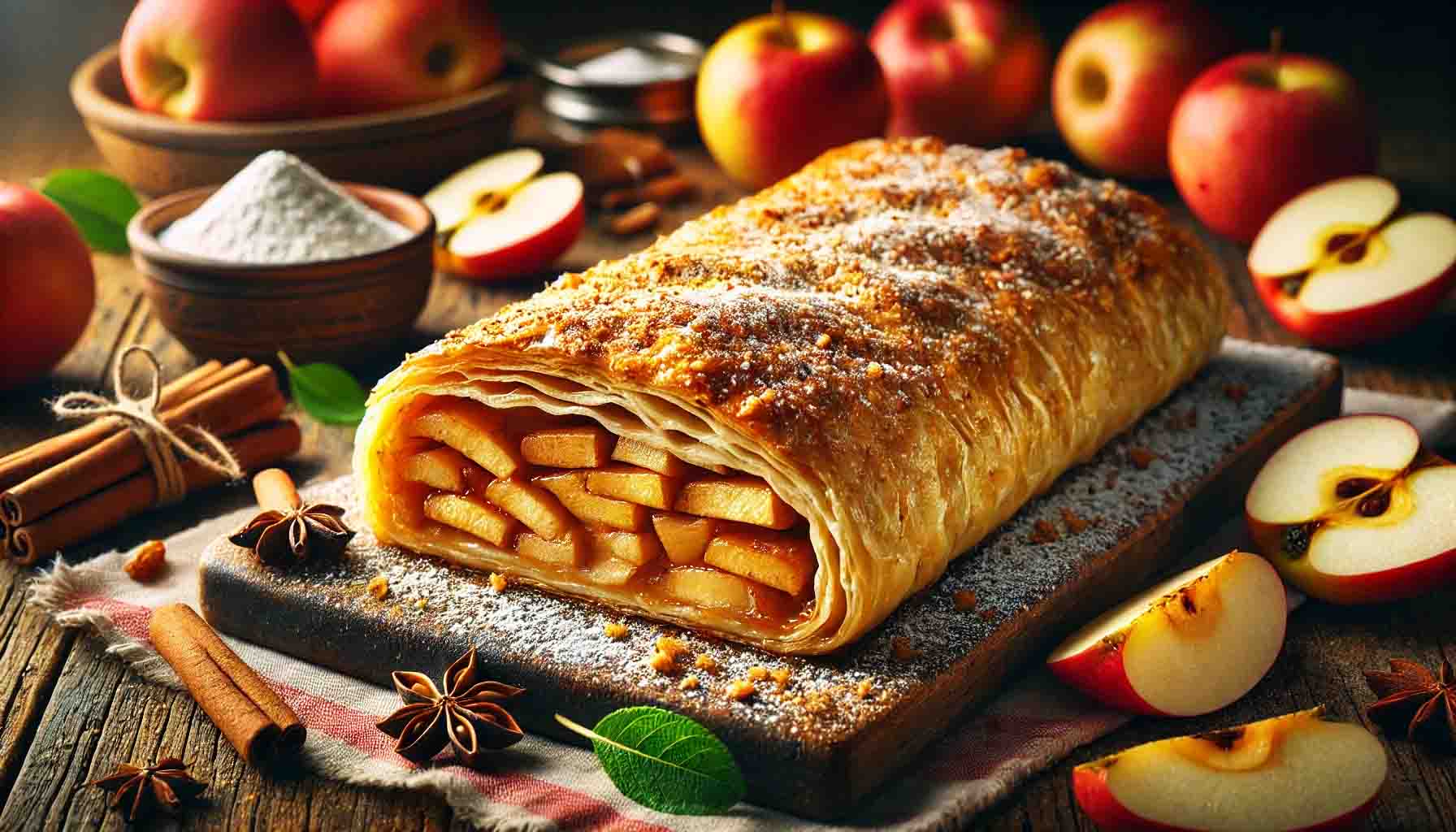 Ștrudelul cu mere este un desert clasic de inspirație austriacă, foarte popular și în România. Se caracterizează prin aluatul subțire și crocant și umplutura generoasă de mere călite, cu scorțișoară și stafide. Este un desert perfect pentru a fi servit cald, alături de o cupă de înghețată sau un sos de vanilie.