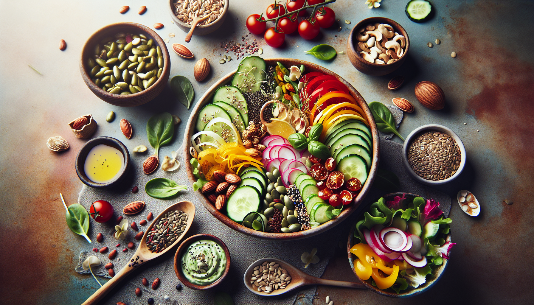 Primăvara este un anotimp excelent pentru a experimenta cu diverse tipuri de semințe în salate, datorită disponibilității bogate de legume proaspete. Combinarea semințelor cu legume de sezon poate maximiza nu doar aportul nutrițional, dar și paleta de texturi și gusturi în salatele dumneavoastră.
