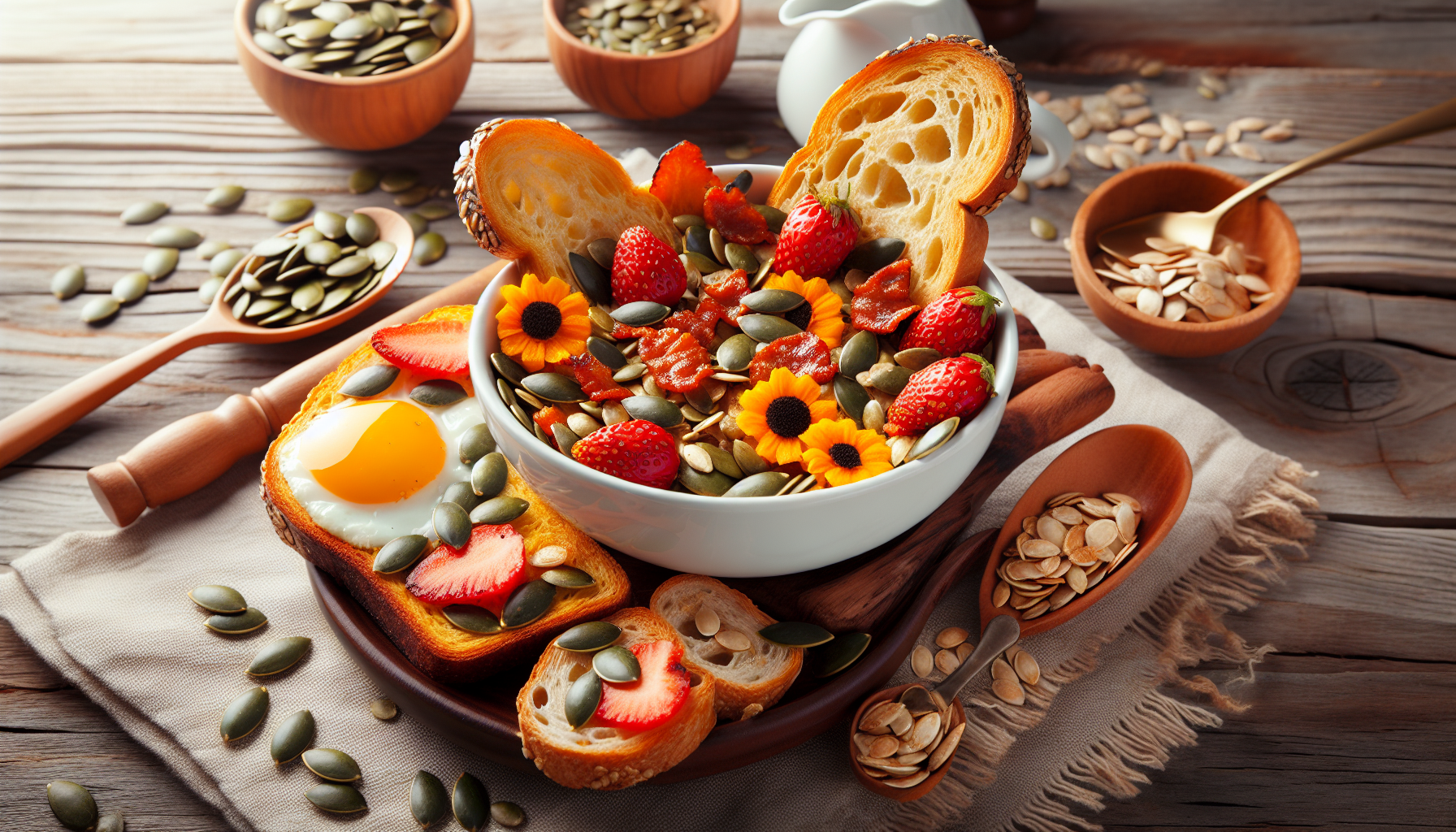 O idee minunată pentru un mic dejun nutritiv este ovăzul cu semințe de dovleac. Se poate prepara ovăzul cu lapte sau apă și se adaugă semințe de dovleac prăjite, alături de fructe proaspete sau uscate pentru un plus de dulceață și textură. Acest mic dejun este nu doar delicios, ci și plin de fibre și proteine care oferă energie pentru întreaga zi.