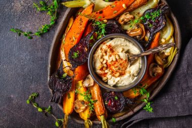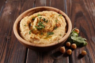 Hummus: Hummusul este o pastă savuroasă și cremoasă realizată din naut, ulei de susan, ulei de măsline, usturoi și suc de lămâie. Este un aperitiv popular și sănătos, servit de obicei cu legume proaspete, pâine plată sau chips-uri.