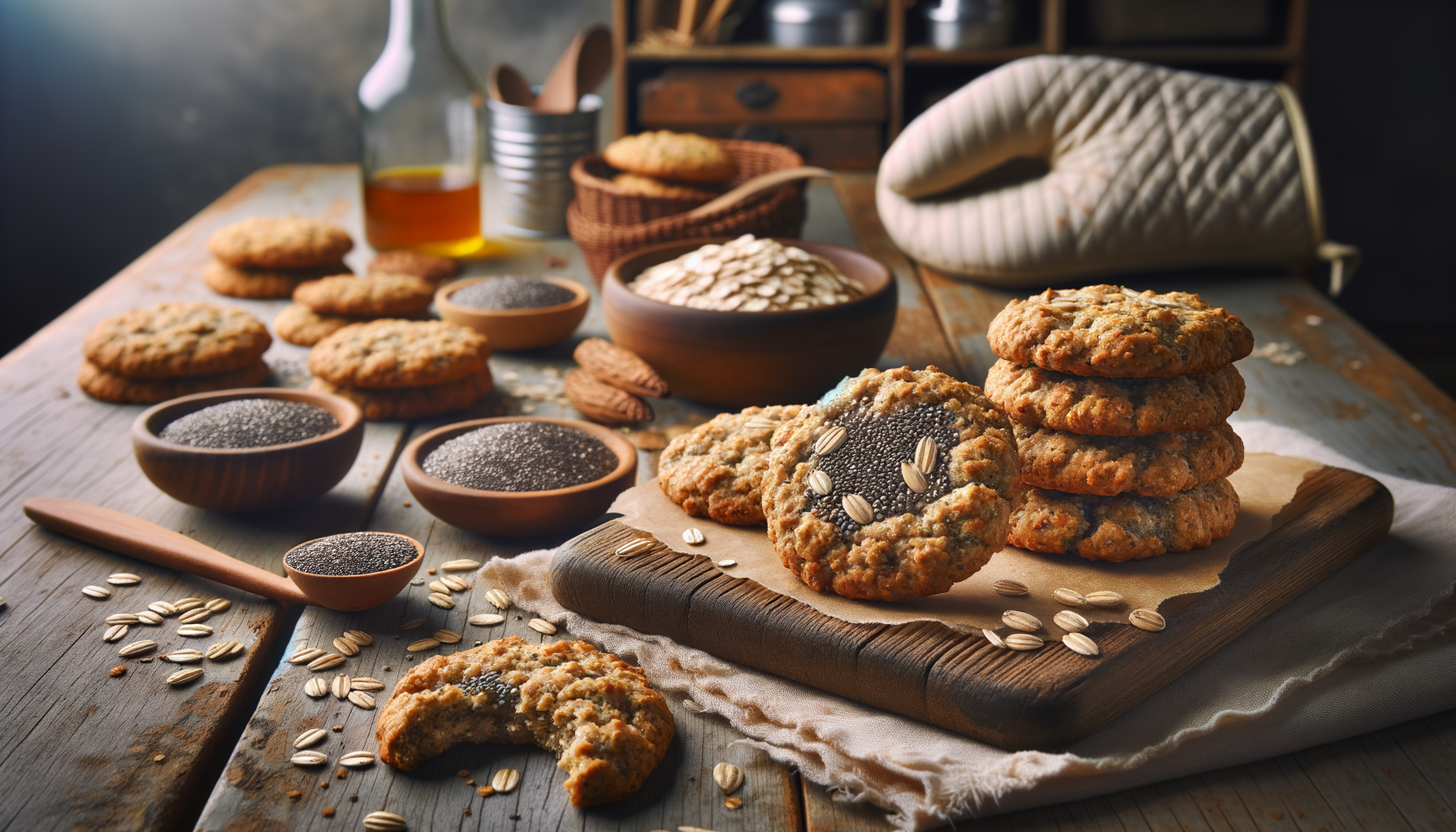 Fiecare porție de biscuiți cu chia și ovăz conține aproximativ 150 de calorii, cu 4 grame de proteine, 20 de grame de carbohidrați și 7 grame de grăsimi (din care 3 grame sunt grăsimi saturate). De asemenea, o porție oferă 5 grame de fibre alimentare și o cantitate semnificativă de acizi grași omega-3 datorită semințelor de chia.