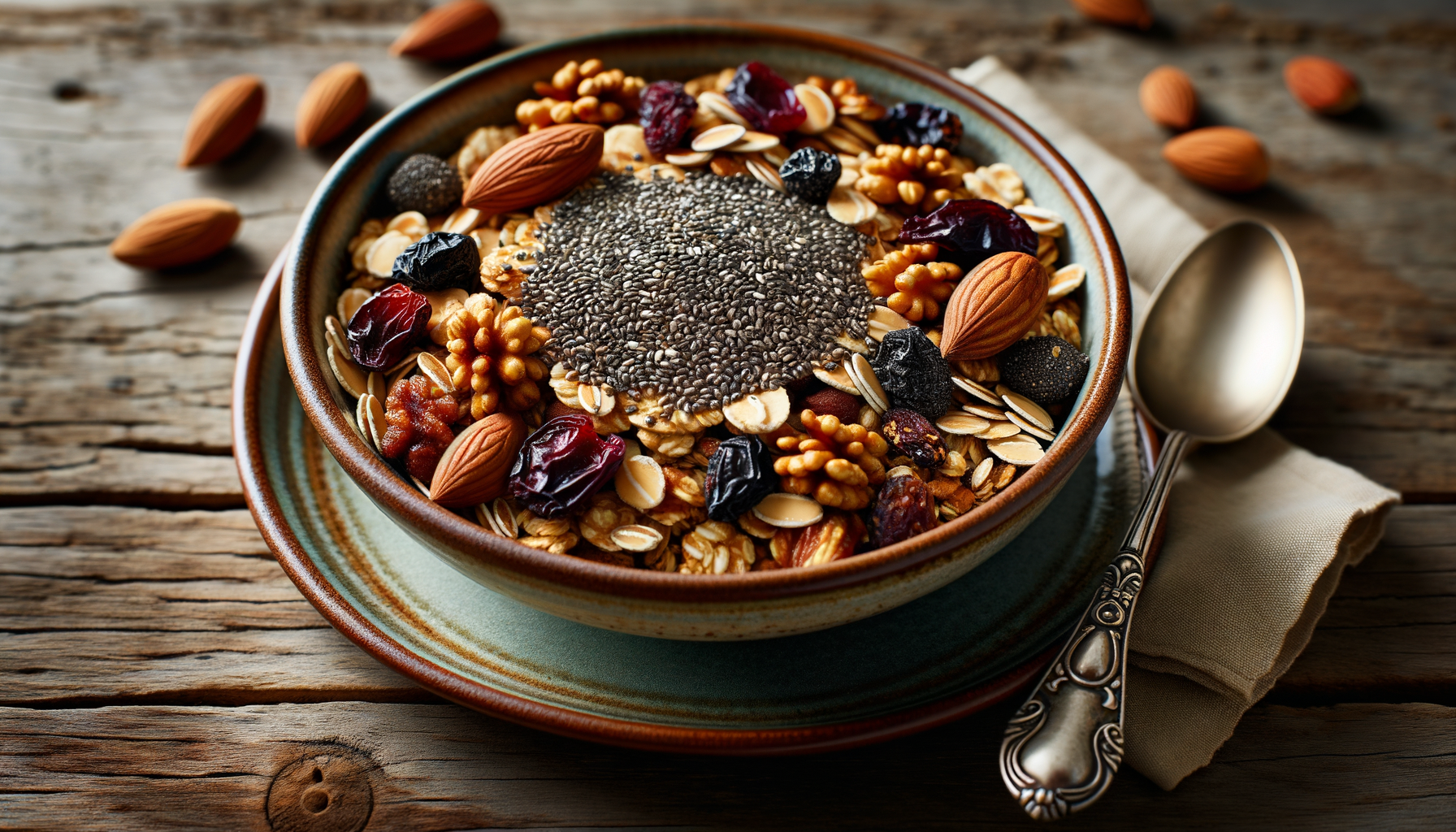 Această rețetă de granola cu chia este nu doar delicioasă, ci și extrem de beneficiară pentru sănătate. Semințele de chia adaugă o textură plăcută și sunt o sursă excelentă de energie de durată. Combinată cu fulgi de ovăz, nuci și miere, aceasta granola homemade este perfectă pentru a începe ziua în forță sau ca un boost de energie înainte de antrenament.