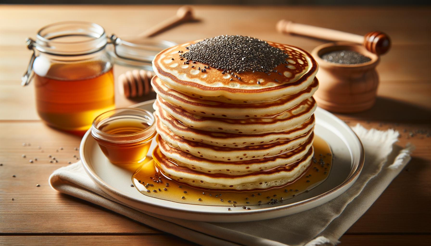 Semințele de chia sunt cunoscute pentru beneficiile lor asupra sănătății, incluzând îmbunătățirea sănătății digestive, susținerea sănătății cardiovasculare și ajutarea la reglarea nivelului de zahăr din sânge. Introducerea acestora în pancakes este o modalitate excelentă de a încorpora aceste semințe miraculoase în dieta zilnică. Descrierea Rețetei de Pancakes cu Chia