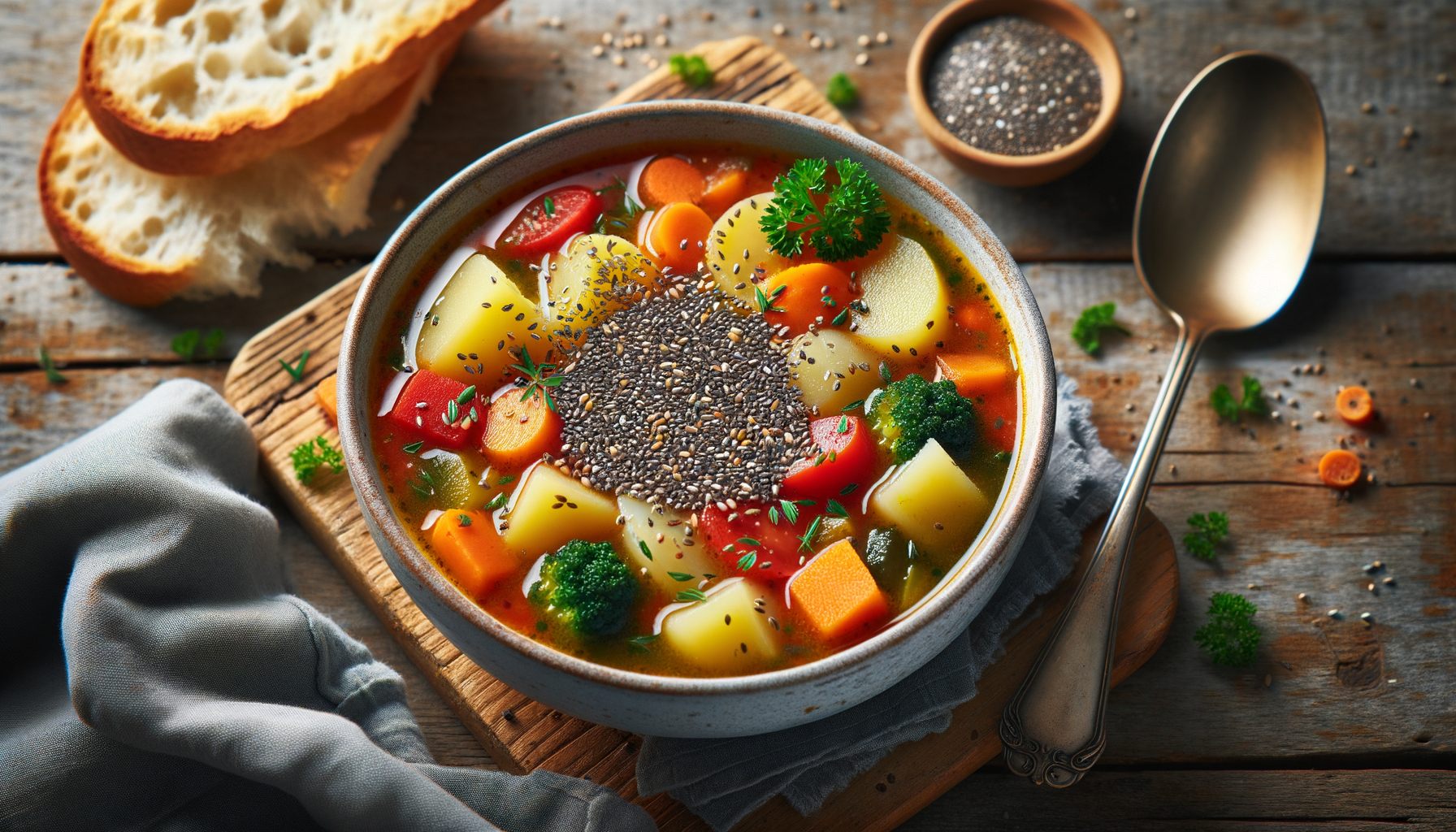 Supa de legume cu chia este o combinație nutritivă excelentă, ideală pentru a îmbunătăți digestia și a oferi un aport consistent de fibre și proteine. Semințele de chia sunt renumite pentru beneficiile lor asupra sănătății, incluzând îmbunătățirea sănătății cardiovasculare și susținerea unui nivel sănătos de zahăr în sânge. Îmbinarea acestora cu legumele creează un preparat bogat în vitamine, minerale și antioxidanți, potrivit atât pentru prânz cât și pentru cină.