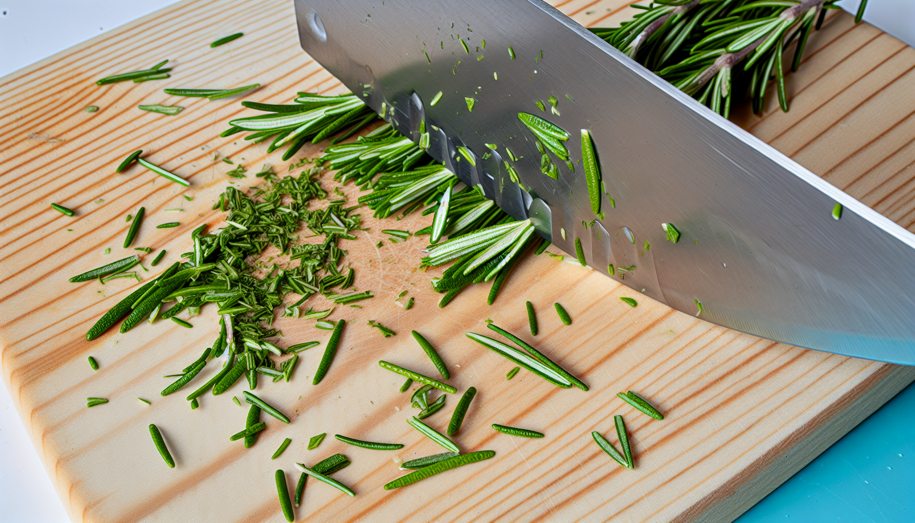 Pentru tocarea rozmarinului, este nevoie de un cuțit bine ascuțit. Frunzele se desprind de pe tulpină, iar apoi se toacă fin. Este important să tocăm frunzele cât mai fin posibil pentru a elibera uleiurile esențiale care conferă aroma specifică.