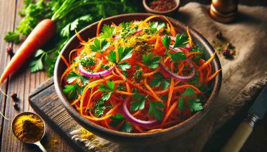 Salată de Morcovi cu Chimion și Coriandru Rețetă: Ingrediente: 4 morcovi mari , curățați și rași 1/2 ceapă roșie , tocată mărunt 1/4 cană pătrunjel proaspăt , tocat 1/4 cană coriandru proaspăt , tocat 1 linguriță chimion măcinat Sucul de la 1 lămâie 3-4 linguri ulei de măsline Sare și piper...