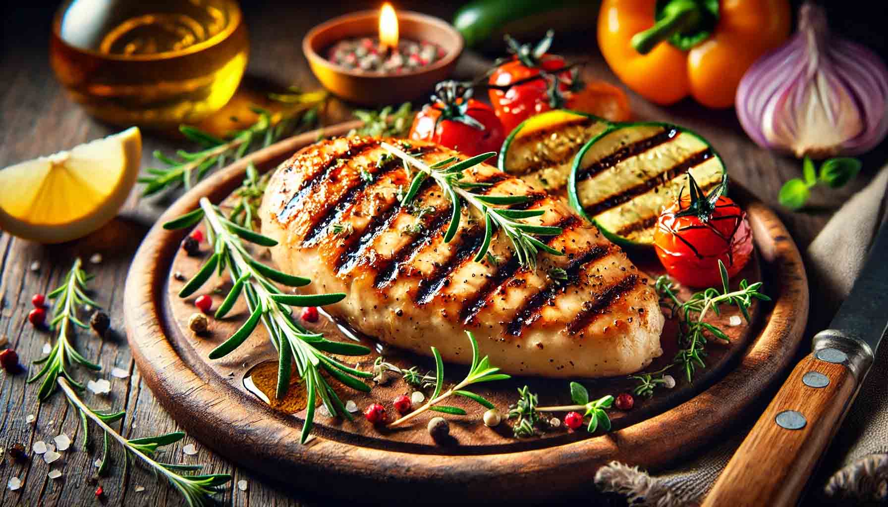 Puiul la grătar cu rozmarin și cimbru este o rețetă simplă și delicioasă, perfectă pentru o cină sănătoasă sau un picnic. Aromele ierburilor proaspete și sucul de lămâie adaugă o notă de prospețime, iar puiul gătit pe grătar oferă o textură suculentă și plină de savoare. Această rețetă este ușor de adaptat cu diferite garnituri și sosuri.