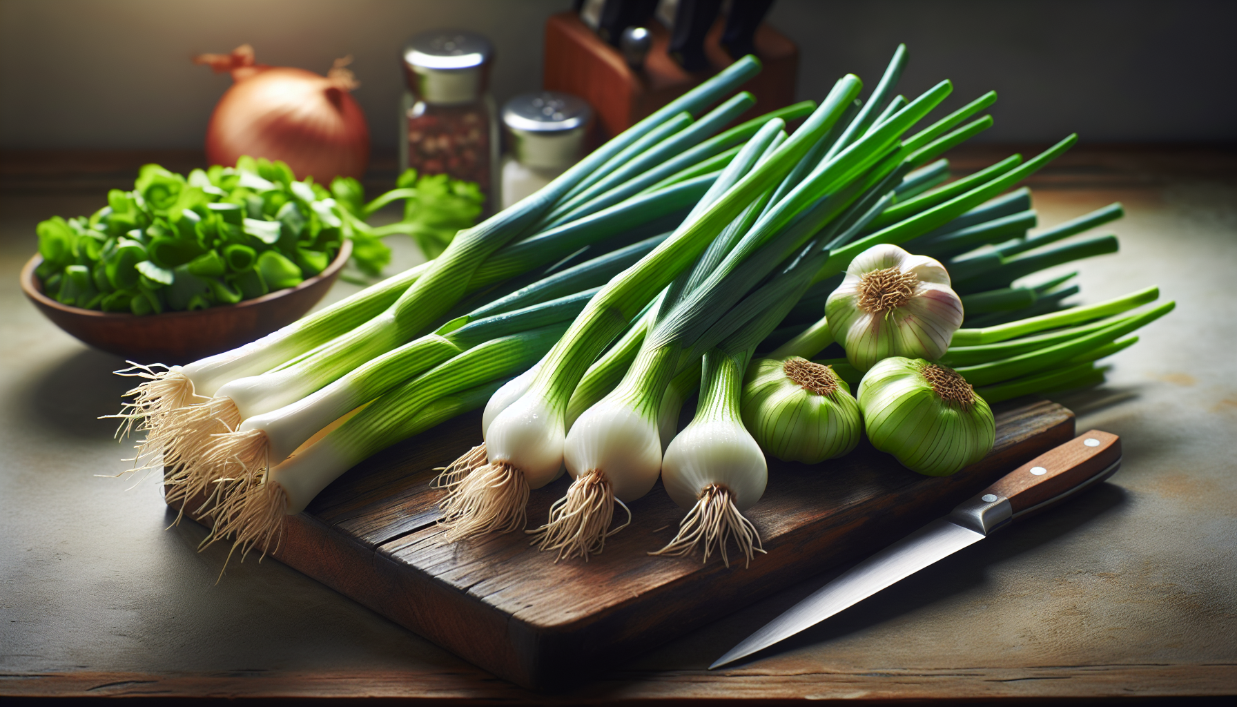Ceapa verde este bogată în vitaminele A, C și K, dar și în minerale cum ar fi fierul și calciul. Usturoiul verde oferă o cantitate importantă de vitamina C, mangan și vitamina B6, și este renumit pentru proprietățile sale antioxidante și antibacteriene.