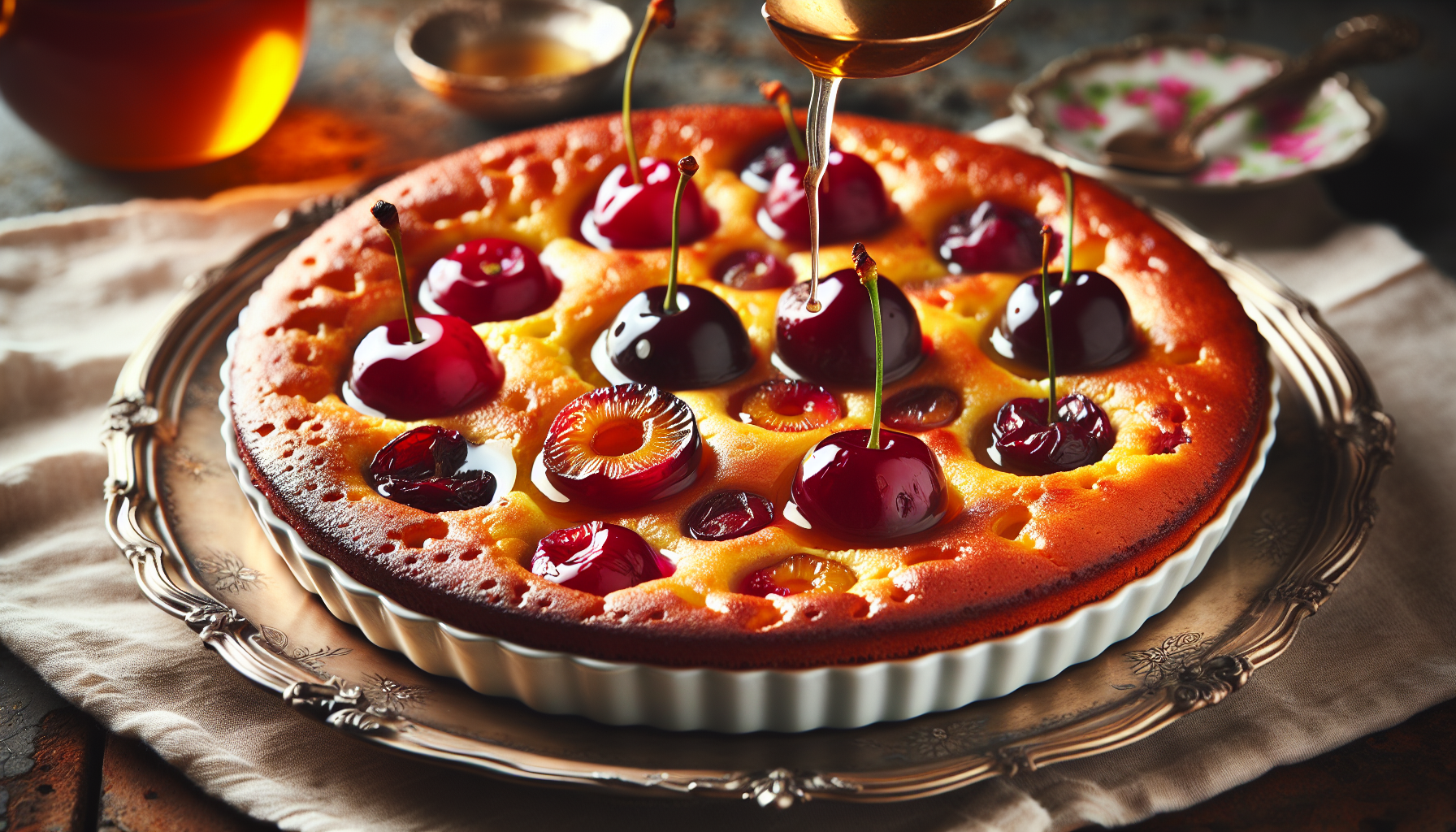 Clafoutis cu cireșe amare și miere polifloră este un desert clasic francez, reinterpretat cu o notă autentic românească prin utilizarea cireșelor amare și a mierii poliflore. Originar din regiunea Limousin din Franța, clafoutis combină simplitatea cu eleganța, fiind un fel de prăjitură cremoasă, coaptă cu fructe întregi. În această variantă, dulceața naturală a mierii echilibrează perfect acrișul specific cireșelor amare, oferind un contrast gustativ delicios și o textură moale, aproape umedă.