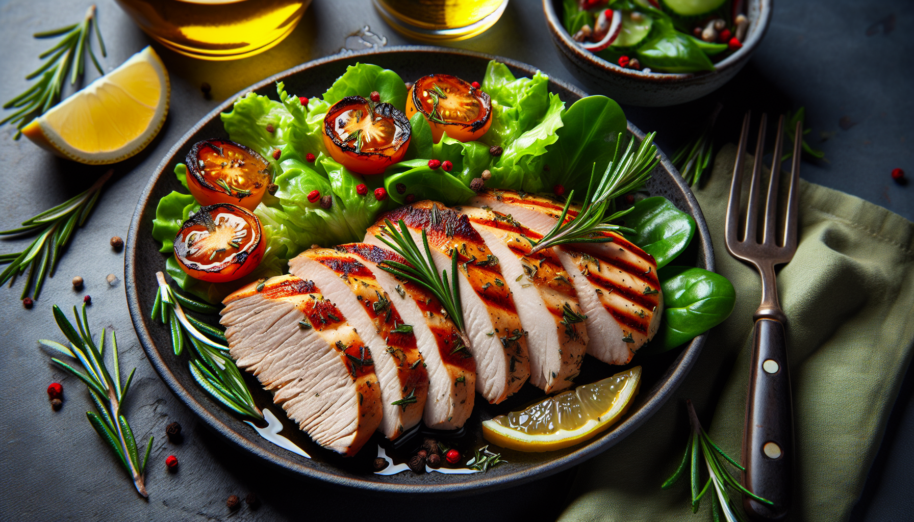 Grătarul de curcan cu rozmarin este o rețetă sănătoasă și savuroasă, perfectă pentru orice zi a săptămânii. Această mâncare îmbină carnea suculentă de curcan cu aroma intensă a rozmarinului și este completată de o salată verde proaspătă și crocantă. Rețeta este simplă, dar rezultatul este o masă plină de gust și texturi plăcute. O opțiune ideală pentru cei care caută o alternativă sănătoasă la carnea roșie.