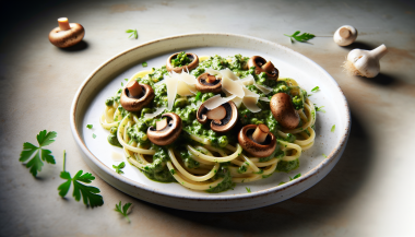 Descriere Descoperiți o rețetă delicioasă și simplu de preparat: paste cu sos de usturoi verde și ciuperci champignon. Combinația perfectă între textura cremoasă a sosului de usturoi verde și aroma delicată a ciupercilor fac din această rețetă o opțiune ideală pentru un prânz sau o cină rafinată. Este o variantă excelentă pentru cei care doresc să...