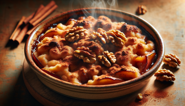 Descriere Crumble de mere de vară cu scorțișoară și nuci este un desert delicios și confortabil, perfect pentru a profita de merele proaspete din sezonul de vară. Acest desert simplu, dar impresionant, combină dulceața naturală a merelor cu aroma picantă a scorțișoarei și textura crocantă a nucilor. Își găsește locul perfect fie că este servit la...
