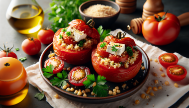 Descriere Rosiile umplute cu bulgur, patrunjel si feta reprezintă o alternativă sănătoasă și savuroasă pentru un prânz sau o cină ușoară. Combinația dintre dulceața roșiilor, textura bogată a bulgurului și aroma puternică a brânzei feta, toate îmbogățite cu prospetimea pătrunjelului, fac din acest fel de mâncare o opțiune perfectă pentru zilele calde...