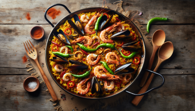 Descriere Paella cu fructe de mare și ardei iute verde este o reinterpretare picantă a tradiționalei rețete spaniole. Acest fel de mâncare combină aromele bogate ale fructelor de mare cu o notă vibrantă de ardei iute, oferind o experiență culinară inedită și savuroasă. Este un preparat ideal pentru cine festive sau pentru a impresiona oaspeții la un...