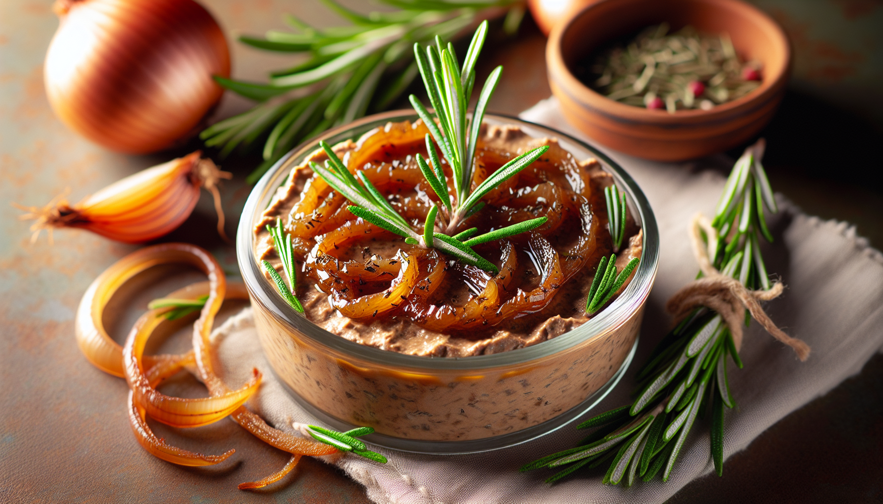 Pateul de ficat cu ceapă caramelizată și rozmarin este o delicatesă care îmbină gustul bogat și textura fină a ficatului cu dulceața subtilă a cepei caramelizate, îmbogățită cu aromele distincte ale rozmarinului. Acest preparat este perfect pentru a fi servit ca aperitiv în cadrul unei mese festive sau ca gustare rafinată în orice moment al zilei. Fie că alegeți să-l serviți pe toasturi crocante sau alături de crudități, acest pate va impresiona cu siguranță orice gurmand.