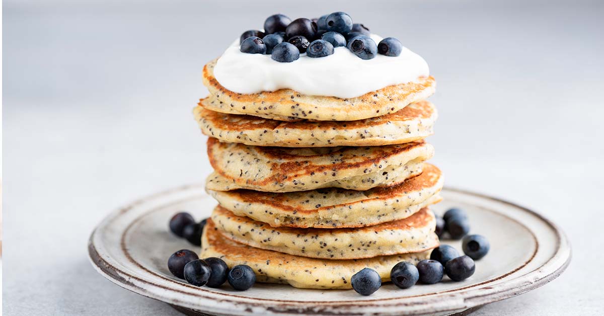 Aceste clătite cu semințe de mac, iaurt și afine sunt o opțiune delicioasă și sănătoasă pentru un mic dejun sau o gustare dulce. Semințele de mac și afinele adaugă o notă crocantă și dulce, iar iaurtul grecesc conferă un gust cremos și sănătos.