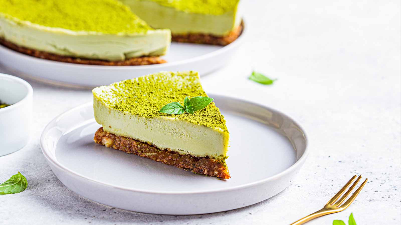 Iată o rețetă simplă pentru un tort raw vegan cu matcha: