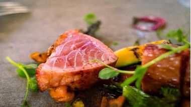 Ton prăjit mediu servit cu microgreens Un ton prăjit mediu se referă la felul în care se gătește tonul - adică la nivelul de gătire al acestuia. Acesta este considerat un nivel mediu, care înseamnă că tonul ar trebui să fie gătit în interior, dar să mai aibă o ușoară tentă rozalie în mijloc....