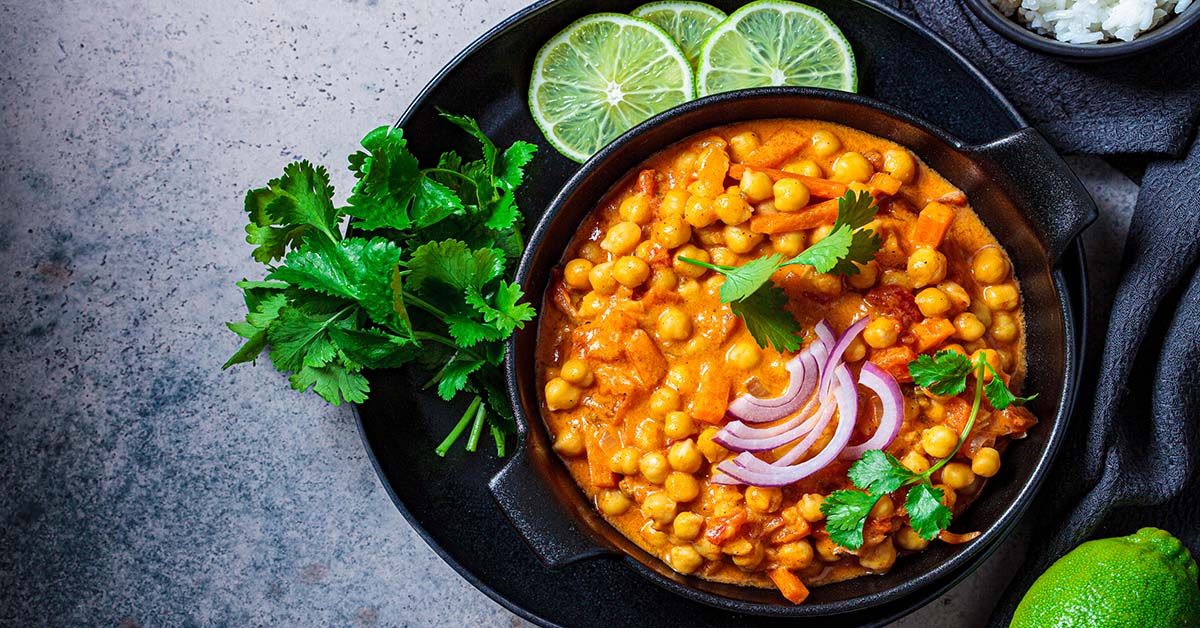 Iată o rețetă delicioasă și ușor de preparat pentru năut curry vegan cu orez și coriandru: