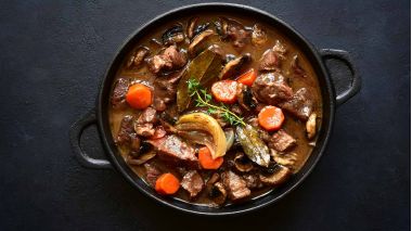 Carne de vită bourguignon - tocană de carne cu legume și ciuperci cu vin roșu Carne de vită bourguignon este o rețetă tradițională franceză de tocană de carne cu legume și ciuperci, gătită în vin roșu, de obicei într-o tigaie de fontă. Iată ingredientele necesare și pașii pentru a găti o porție de...