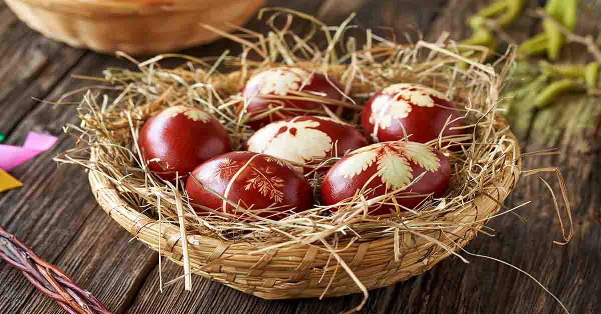 Ouă roșii - Ouăle vopsite în roșu sunt un simbol al învierii și al reînnoirii în multe culturi. Acestea pot fi servite ca atare sau folosite în alte preparate, cum ar fi salate sau torturi.