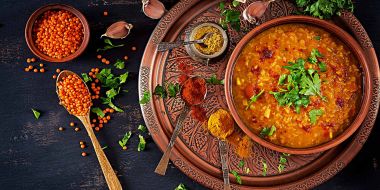 Supa de linte: O supa făcută cu linte, legume precum morcovi și ceapă, și condimente precum turmeric și ghimbir reprezintă o opțiune sănătoasă și bogată în proteine și fibre.