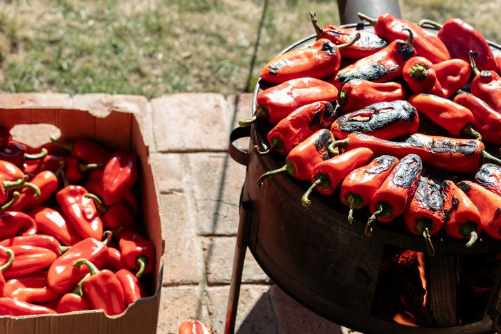 - Ardei copti (ar fi ideal să folosiți ardei dulci, cum ar fi ardeiul Kapia sau ardeiul roșu dulce)