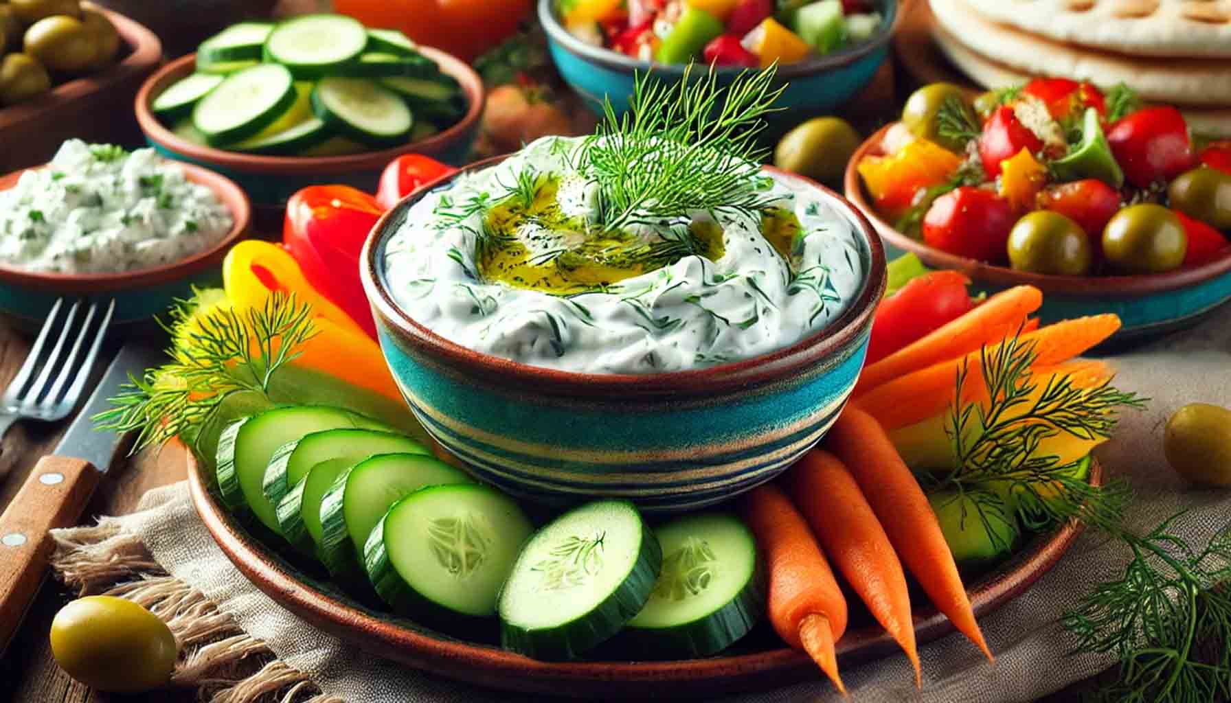 Tzatziki este adesea prezent pe mesele festive, aducând un gust proaspăt și vibrant: