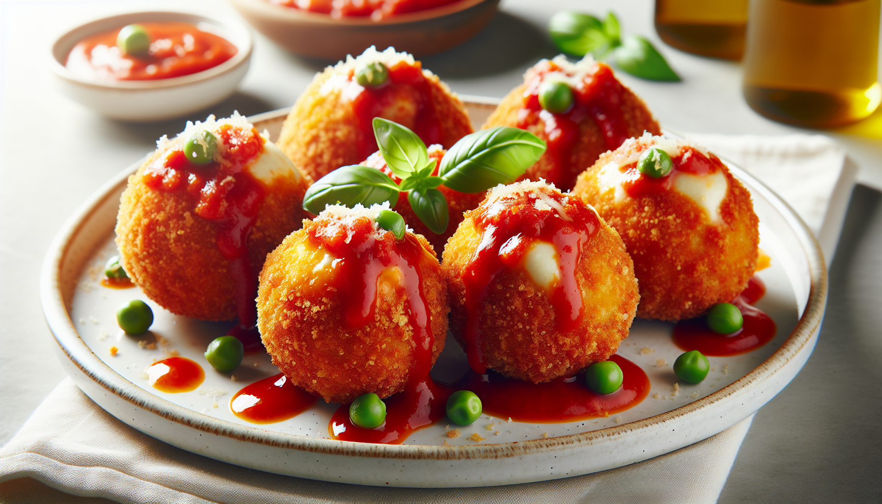 Arancini sunt sfere de orez risotto răcite, umplute cu diverse ingrediente precum carne, mozzarella, mazăre sau ciuperci. Se învelesc în pesmet și se prăjesc până devin aurii și crocante. Ceea ce face ca această rețetă să fie specială este sosul de roșii care adaugă o notă suplimentară de savoare. Aroma intensă a roșiilor combinată cu condimente mediteraneene completează perfect textura arancini. Fiecare mușcătură oferă o explozie de gust, încorporând elementele clasice ale bucătăriei italiene, creând un echilibru perfect de arome și texturi.