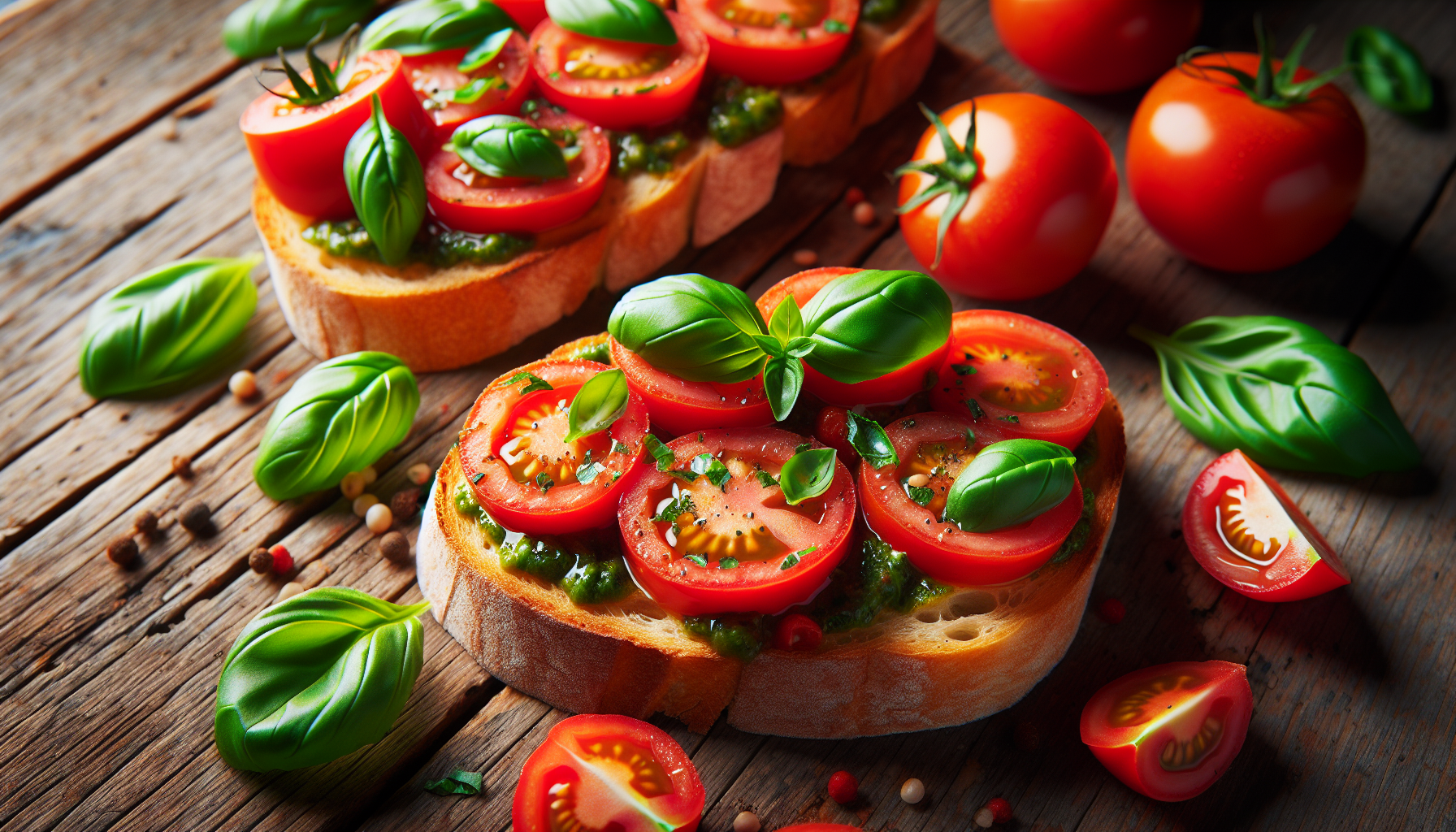 Bruschette cu roșii și busuioc reprezintă una dintre cele mai îndrăgite și simple rețete din bucătăria italiană, fiind un aperitiv delicios care îmbină aromele proaspete ale roșiilor cu parfumul inconfundabil al busuiocului. Această combinație clasică este nu doar gustoasă, ci și rapid de preparat, fiind perfectă pentru momentele când dorești să impresionezi musafirii cu un preparat fără prea mult efort. Originare din regiunile sudice ale Italiei, bruschettele sunt astăzi populare în întreaga lume și sunt servite în diverse variante, însă cea cu roșii și busuioc rămâne una dintre favorite. Prepararea acestora necesită doar câteva ingrediente de bază, dar calitatea lor este esențială pentru un gust autentic și savuros.
