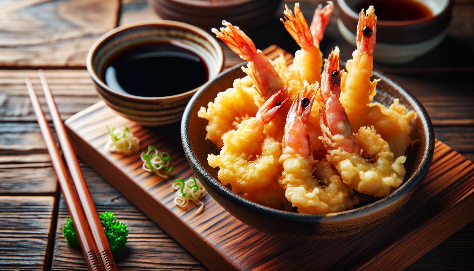 Creveții sunt esența acestui preparat, oferind o savoare aparte datorită dulceaței lor naturale care se îmbină perfect cu crocantul aluatului. În combinație cu sosul de soia, care adaugă un gust umami complex, tempura de creveți devine un fel de mâncare sofisticat.