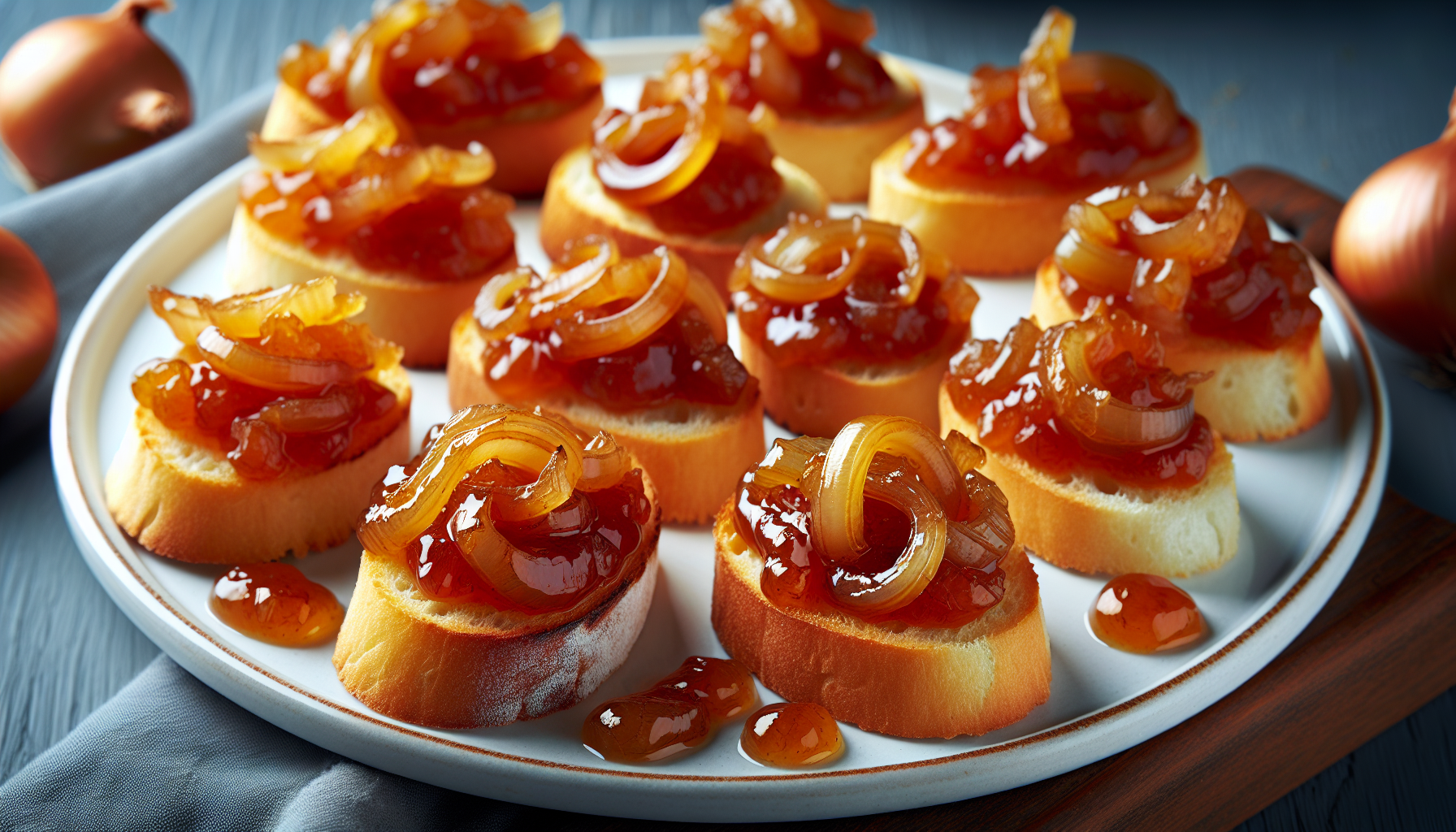 Crostini cu dulceață de ceapă reprezintă o gustare savuroasă și rafinată, ideală pentru a impresiona oaspeții la orice ocazie. Originari din Italia, crostini sunt felii de pâine prăjite care pot fi acoperite cu o varietate de toppinguri. Versatilitatea acestora îi face o alegere populară pentru aperitivele elegante sau gustările rapide. Dulceața de ceapă adaugă un contrast echilibrat de dulce și sărat, completând savoarea crostinilor.
