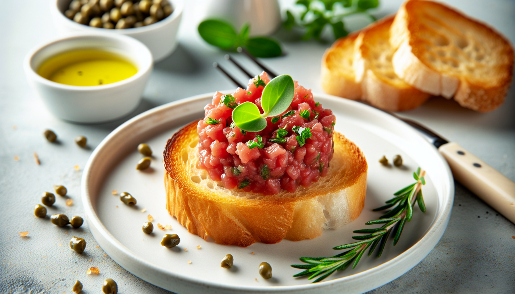 Alegerea ingredientelor este crucială pentru reușita unui mini tartar de vită plin de savoare și calitate. În primul rând, carnea de vită trebuie să fie proaspătă, iar cel mai potrivit tip de carne este mușchiulețul de vită, datorită texturii sale moi și delicate, care se pretează perfect la tartar. Asigurați-vă că achiziționați carnea de la un furnizor de încredere care să vă garanteze prospețimea și calitatea materiilor prime. Muștarul dijon aduce o notă de iuțeală și adâncime, așa că este important să îl alegeți pe cel original, nu o variantă ieftină. Ceapa roșie ar trebui să fie proaspătă și să aibă un gust dulceag, contrastând plăcut cu carnea crudă. Caperele și sosul Worcestershire adaugă un strop de sărat și dulce, asigurând o armonie de gusturi. Pentru pâinea crocantă, este recomandat să selectați o pâine de calitate, ideal ar fi să fie integrală sau un baguette proaspăt, care să se poată prăji ușor și să ofere acea textura perfectă pentru tartar.